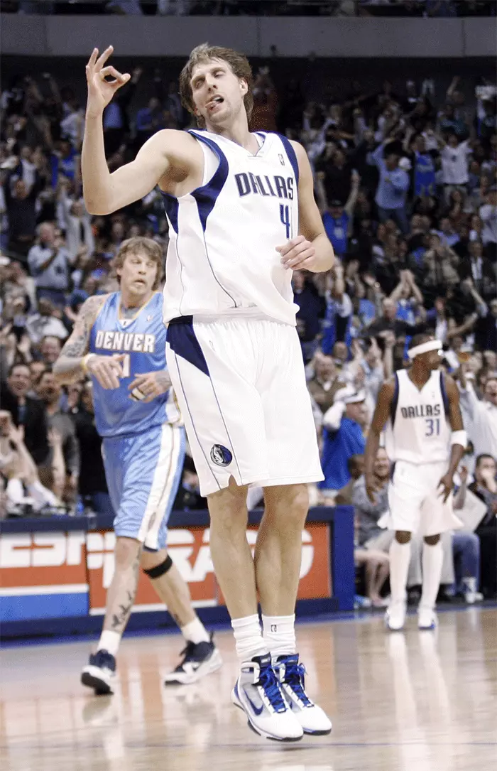 דירק נוביצקי נתן עונה גדולה, ולקראת סיומה הזכיר שוב איזה פורוורד אדיר הוא עם טריפל-דאבל במשחק חשוב מאוד, נגד דנבר, שנלחמת על שיפור מיקומה לקראת הפלייאוף. נוביצקי קלע 34 נקודות (7 מ-17 מהשדה), הוריד 10 ריבאונדים ומסר 10 אסיסטים, כשהוא שומר על דאלאס שנייה במערב. "ככה זה כשאנחנו במיטבנו וחולקים בכדור", אמר הגרמני בסיום. את האסיסט העשירי, שהביא לו טריפל-דאבל הגיש נוביצקי 2:15 לסיום לג'ייסון טרי (15 נקודות), שקלע משישה מטרים ג'אמפ שהעלה את המאבס ליתרון 18. "נוביצקי עשה הכל", החמיא ג'ייסון קיד (8 נקודות ו-10 אסיסטים), חברו לקבוצה, "הוא התגבר על הדאבל-טים, מסר וקלע". שון מריון הוסיף 21 נקודות למנצחים, ותרם תרומה גדולה מאוד בהגנה, כשעצר את כרמלו אנתוני על 10 בלבד (3 מ-16 מהשדה, 9 ריבאונדים). ג'יי.אר סמית הוליך את הנאגטס עם 27 נקודות מהספסל, ננה הוסיף 14 ו-8 ריבאונדים, צ'ונסי בילאפס קלע 11 ומסר 6 אסיסטים.
